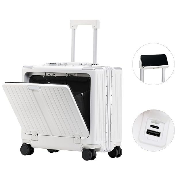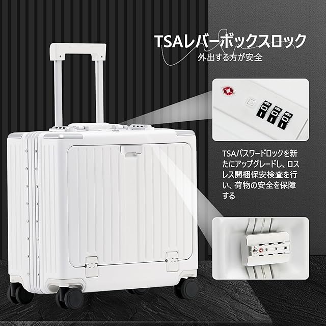 [GGQAAA] スーツケース キャリーケース トップオープン USB充電 多機能 アルミフレーム TSAロック ダブルキャスター ファッション (White, 18 インチ)