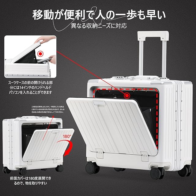 【多機能フロントカバーデザイン&合理的な仕切りデザイン】スーツケースにて画期的なデザイン、前ポッケトスーツケースが誕生。読みたい雑誌でも、仕事で必要なパソコンでも、早く手に取りたいものがたっぷり入られます。 高品質のポリエステル生地で、柔らかいかつ快適です。密閉されたU字型コンパートメントは荷崩れ防止だけでなくプライバシー保護効果もあります。乾湿分離のデザイン、分けて収納でき、よりきれいです。。メッシュポケットにより、収納しにくい小物でもは一目でわかります。X型ベルトが完備され、荷物崩れを完全防止。収納力抜群、たくさんの小物を入れることはできます。