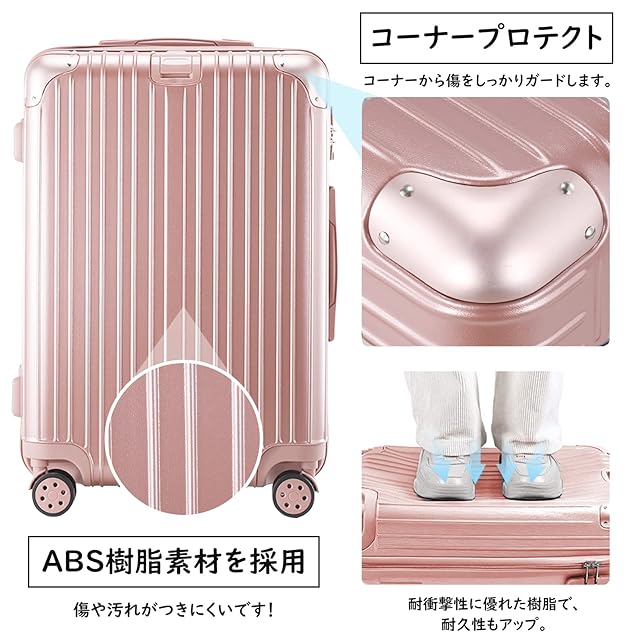【丈夫かつ軽い素材】軽さと堅固性に優れているポリカーボネートとABS樹脂を配合したボディ。女性でも持ち上げられる軽さですが、衝撃に強く中の荷物をしっかりと守ります。 衝撃にも強く、無数に細かい凸凹が傷をつきにくくしてくれます。