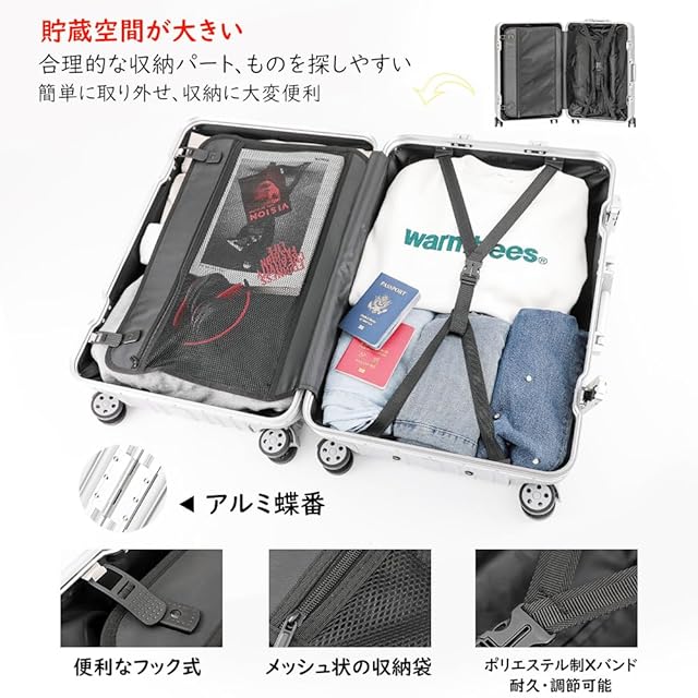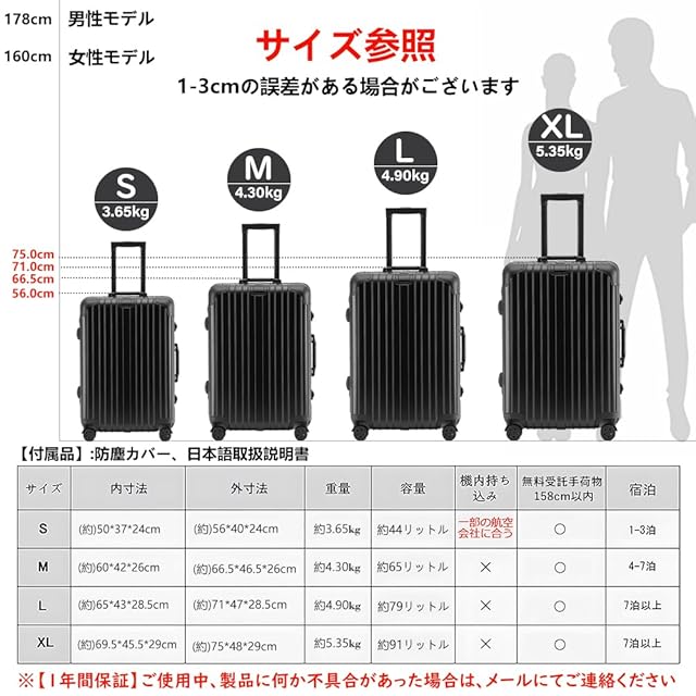 [Vilgazz] スーツケース キャリーケース アルミフレームタイプ 耐衝撃 キャリーバッグ 軽量 キャリーバック TSAロック 360度回転 ダブルキャスター 静音 大型 大容量 旅行 出張 XLサイズ 7泊以上 91L ブラック