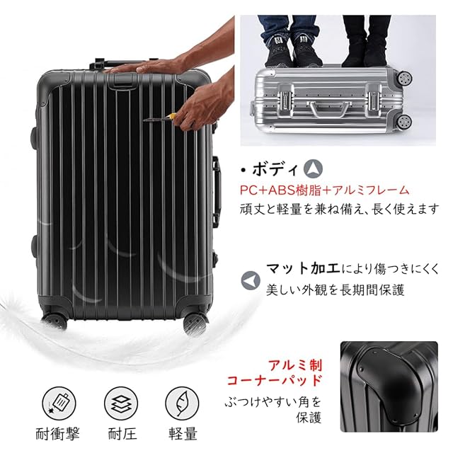 【PC+ABS樹脂+アルミフレーム】vilgazzキャリーケースは頑丈なボディと超軽量デザインが特徴です。さらに表面はマット加工で、傷つきにくいです。重量わずか3.65kgで、疲れずに持ち運べます。容量は44ℓ、1泊から3泊の短期旅行に十分な大きさです。