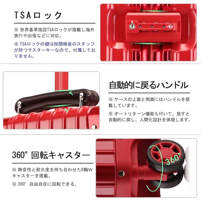 【TSAロック】海外旅行には欠かせない世界基準のダイヤル方式のTSAロックを採用しています、より安全で便利です。注意:本体の鍵穴はTSA職員の検査用ですので、お客様には付属の鍵はございません。