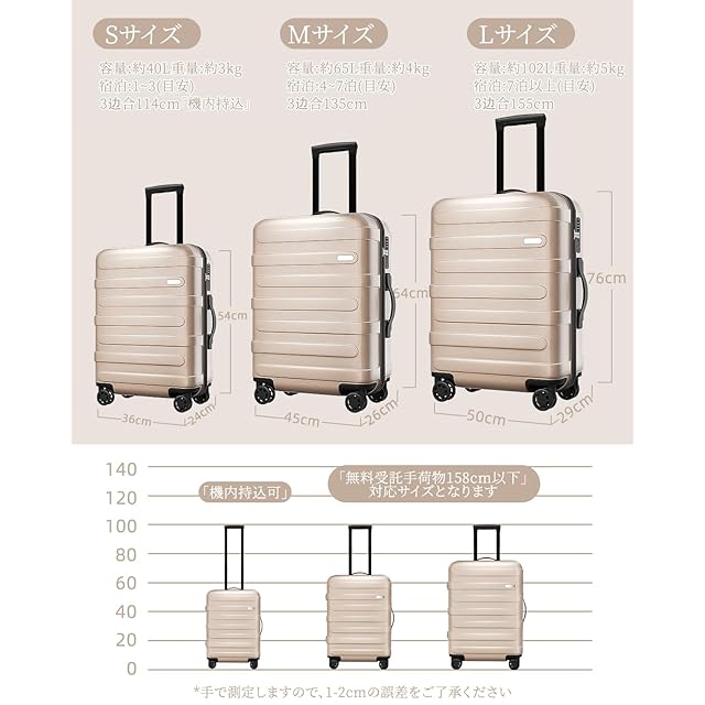 color:シャンパンゴールド size:L サイズ(7泊以上):