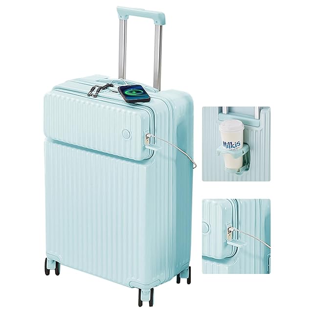 [Manatsulife] キャリーケース スーツケース 旅行 出張 超軽量 フロントオープン カップホルダー付き USBポート付 乾湿分離 ロック付 静音 耐衝撃 ビジネス おしゃれ XBM02 (ブルー, S(33L、機内持込OK))