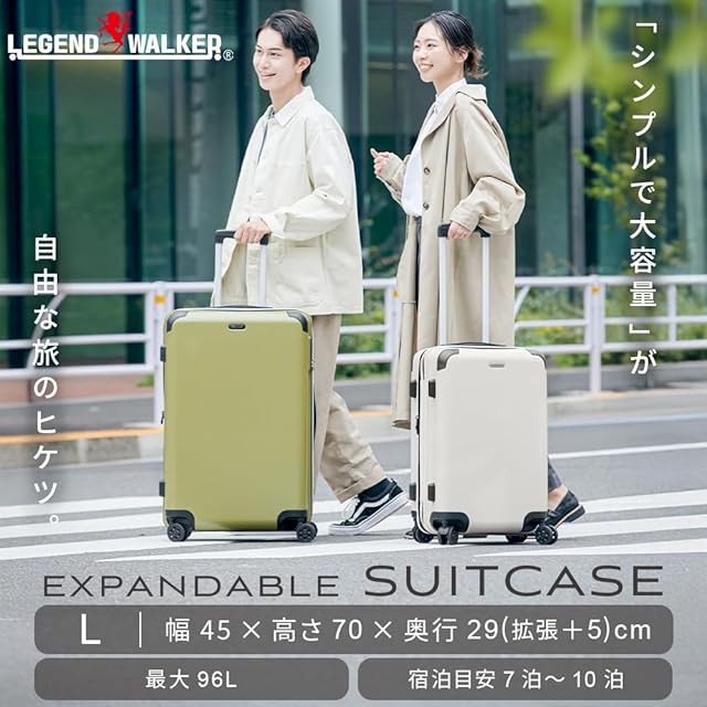 【レジェンドウォーカー(LEGEND WALKER)】 アイリスプラザ(IRIS PLAZA) スーツケース キャリーケース Lサイズ 容量拡張機能付きで旅先で荷物が増えても対応可能タイプ 耐衝撃 グリーン 5515-70