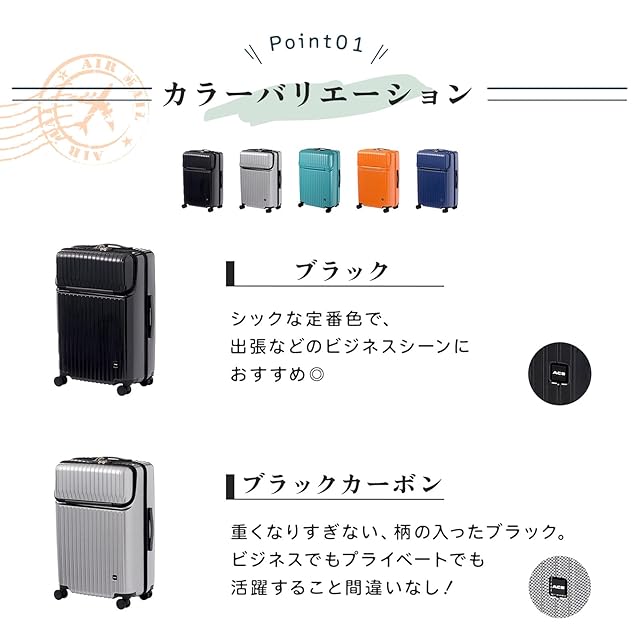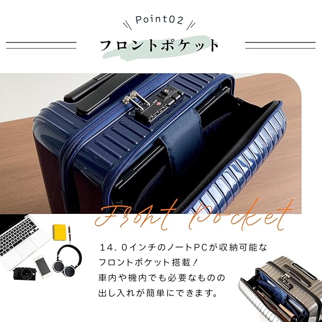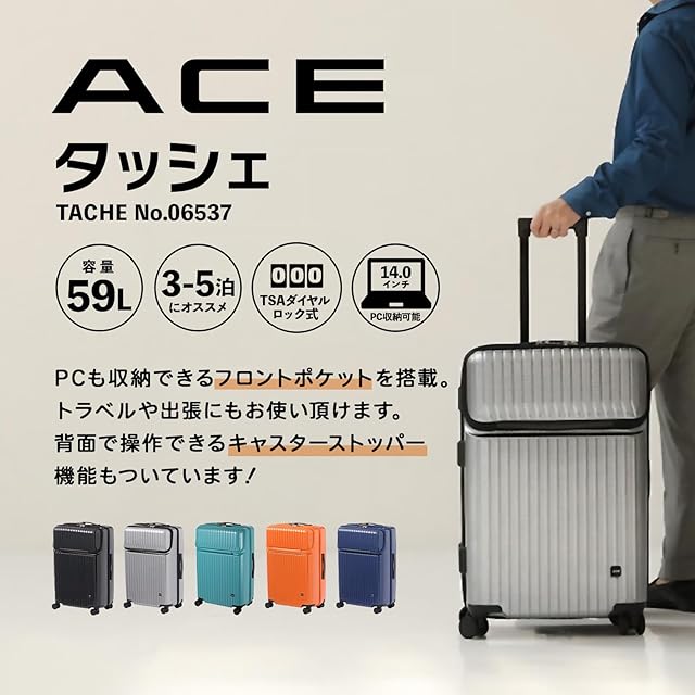 ACE(エース) スーツケース mサイズ 3泊4日 4泊5日 59L フロントポケット 14inch PC収納 キャリーケース タッシェ No.06537 ブルー
