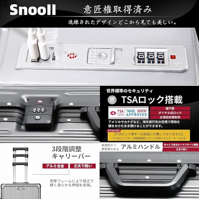 【現役客室乗務員が設計を指導·日本企業企画】現役客室乗務員の経験と日本企業の企画に基づき、SnooIIは最もコストパフォーマンスの高いスーツケースセットを発売した。 SnooIIの理念は、ブランドのフォロワーに最高の旅行道具を提供することであり、大型の多機能スーツケースは利益率が大きいが、多くの顧客は、前開きの蓋や充電ポートは実際の旅行ではあまり使われず、逆にスーツケースの収納スペースを狭くしてしまうと反省している。ビジネスマンだけでなく、学生でも飛行機に乗るときは20インチの機内持ち込みスーツケースしか持ち歩けないという人が増えていますし、パソコンやipadなどの貴重な電化製品をチェックイン用の大型スーツケースに入れることもありません。そのため、24インチと27インチのスーツケースのブレーキホイールとフックはそのままに、スーツケースの収納スペースを減らすことになる前面開口部のフラップとカップホルダーを取り外した。 このデザインコンセプトをシリーズ化し、お客様にお選びいただけるようにしました。