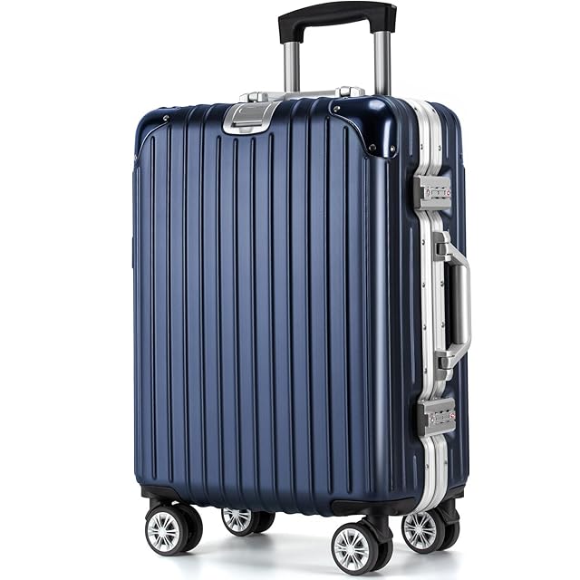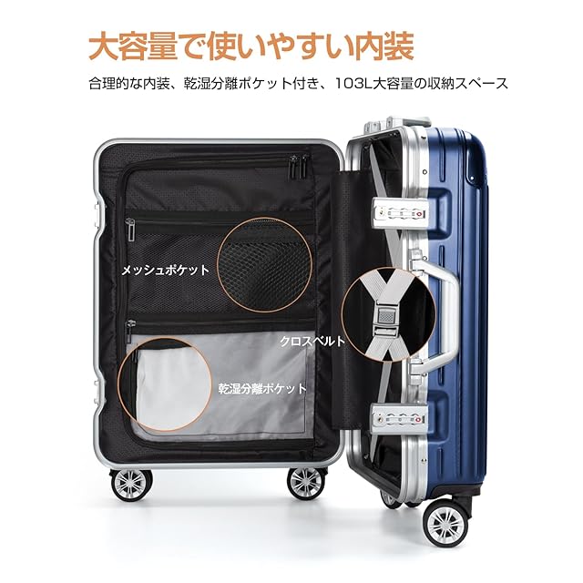 [VARNIC] スーツケース キャリーケース キャリーバッグ アルミフレーム 大型 静音 ダブルキャスター 耐衝撃 360度回転 TSAダイヤルロック 旅行 出張 (L, ブルー)