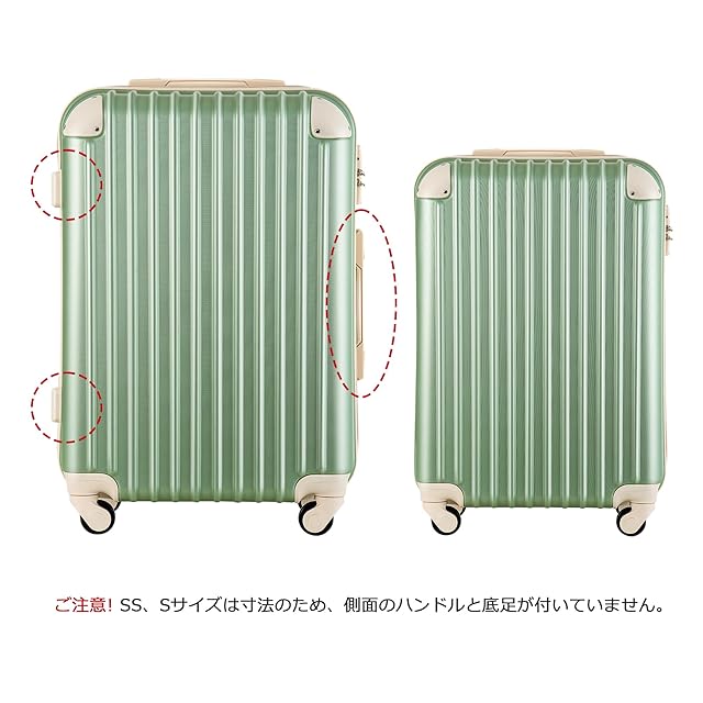 【サイズ】 SSサイズ(機内持込) 外寸:約52.5x34.5x22.5cm 内寸:約47x33.5x20cm 重量:約 2.65 kg 容量:約 31.4L 1~3泊に似合います。 Sサイズ 外寸:約37x56x24cm 内寸:約35x50x23cm 重量:約 2.8 kg 容量:約 40.2L 1~3泊に似合います。 Mサイズ 外寸:約65x43x26cm 内寸:約58x41.5x26cm 重量:約 3.3kg 容量:約 62.6L 4~7泊以上。 ※Sサイズは一部の航空会社だけに適用しますので、事前に航空会社に確認したほうがいいんです。 【表面素材】スーツケースはABS樹脂とPCでの混合素材を採用しており、純ABS樹脂より耐衝撃性に優れています。エンボス加工、傷つきにくい。縦縞デザインにより、シンプルかつファッションです。超軽量で携帯便利、女性でも楽々に持ち出かける人気なキャリーケースです。