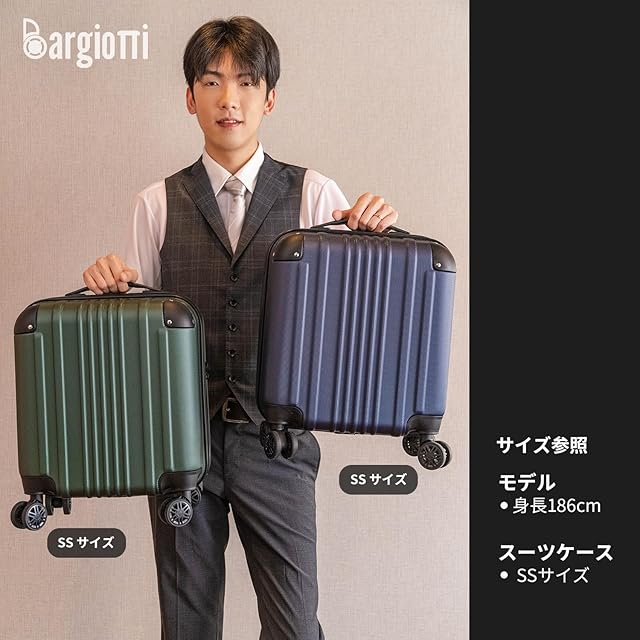 [Bargiotti] ABSスーツケース キャリーバッグ キャリーケース 大容量 超軽量 TSAロック ダブルキャスター 静音 旅行 ビジネス コインロッカー収納可 (グリーン, S-Small)