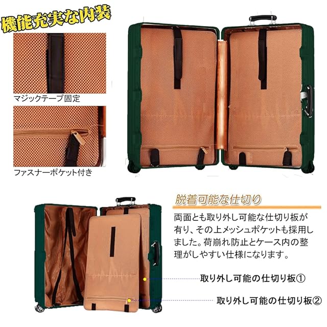 【内部収納に便利】トランクケースの収納能力が非常に高く、初心者の方から旅慣れた方まで幅広くご利用頂けるスーツケースです、耐久性には優れて丈夫です、長持ちできます。それから、荷物を固定するクロステープがあります。仕切り板も荷物のこぼれる事故を防ぎます。大容量の時にキャリーで安いです。