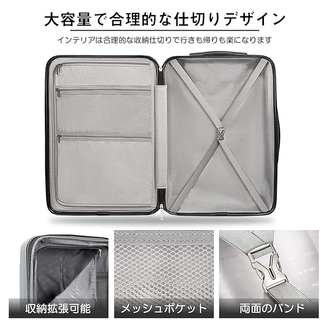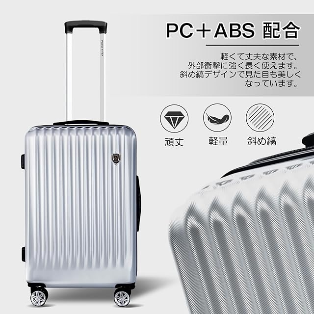【高品質なボディ&信頼のYKKファスナー】ABS樹脂は軽くて弾力性と割れに強く、PC(ポリカーボネート)樹脂は耐衝撃性・断熱材に優れる、両素材を混合した耐久性が高いハードタイプの高品質ボディを実現しています。また、日本が世界に誇るYKKファスナーをメインファスナーに標準装備。ファスナータイプのスーツケースによくあるファスナーの不具合(ファスナー脱線や開き)を解消し、長期にわたり安定した使用感が可能となりました。
