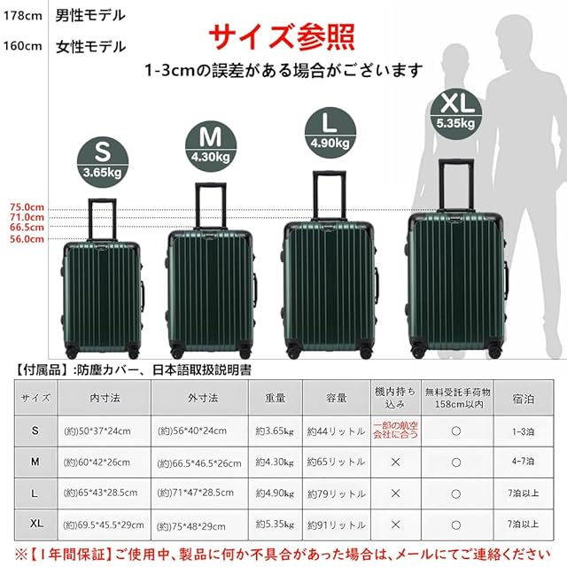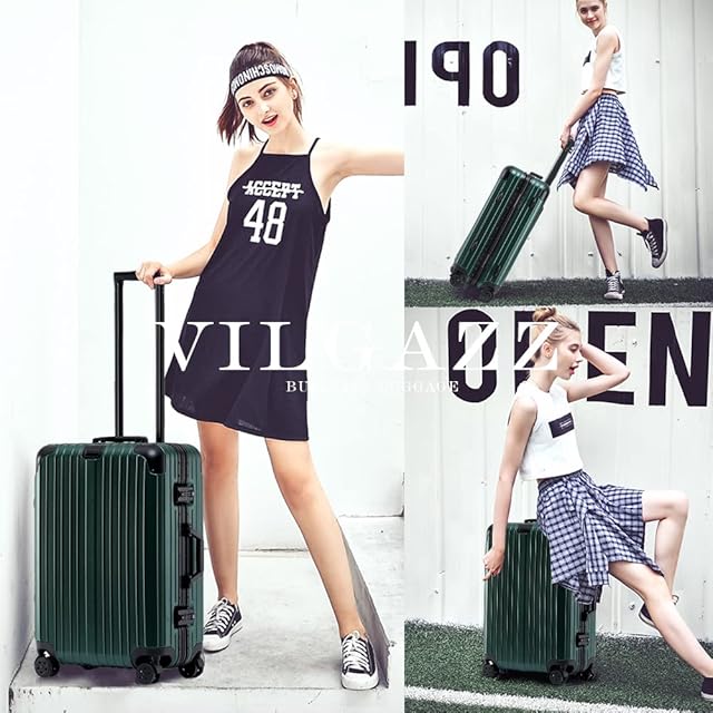 [Vilgazz] スーツケース キャリーケース アルミフレームタイプ 耐衝撃 キャリーバッグ 軽量 キャリーバック TSAロック 360度回転 ダブルキャスター 静音 大型 大容量 旅行 出張 Mサイズ 4-7泊 65L グリーン
