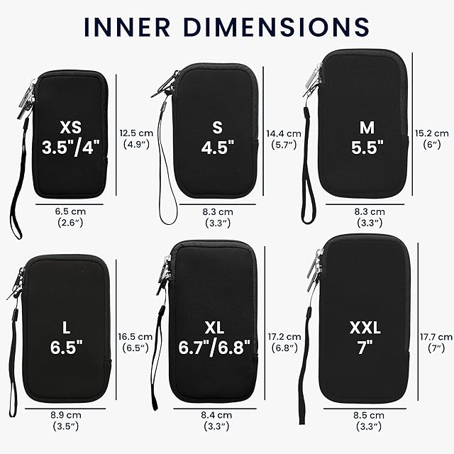 マルチケース: このプロテクションの内寸法は12.5 x 6.5 cm でXS - 3,5/4"のスマホに合います。お持ちのスマフォのサイズをご購入前にお確かめください。スマホポーチはジッパーでピタリと閉じられるので、持ち運び中も安心、安全に保護します。