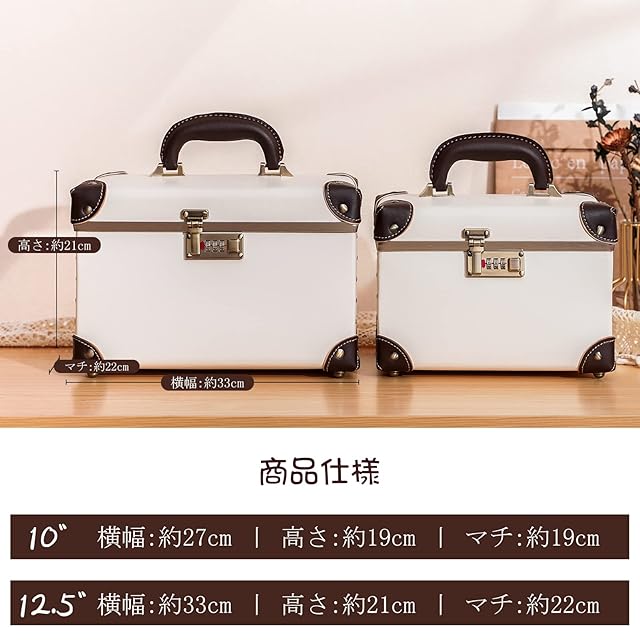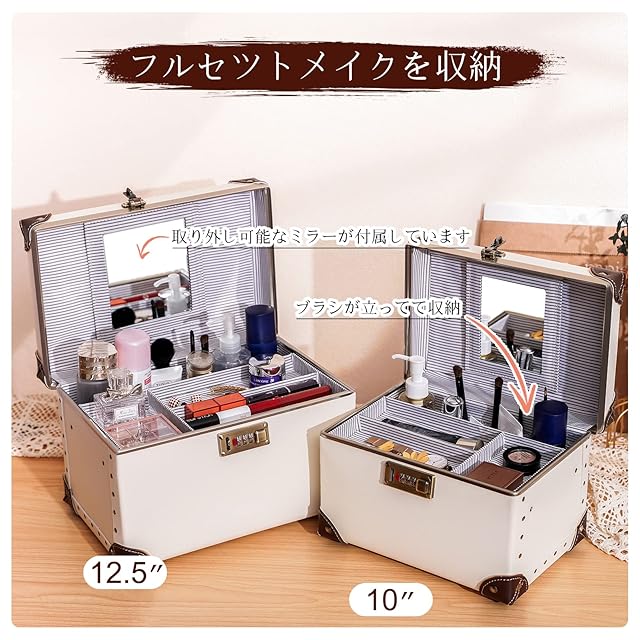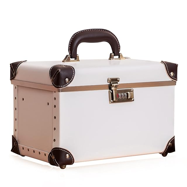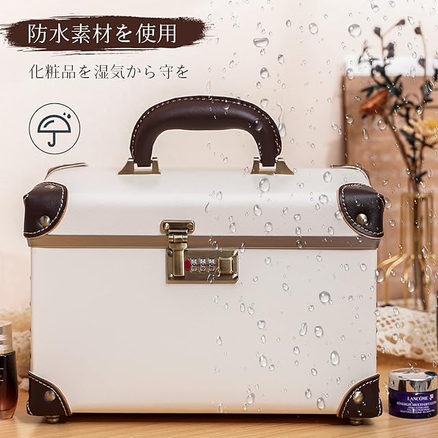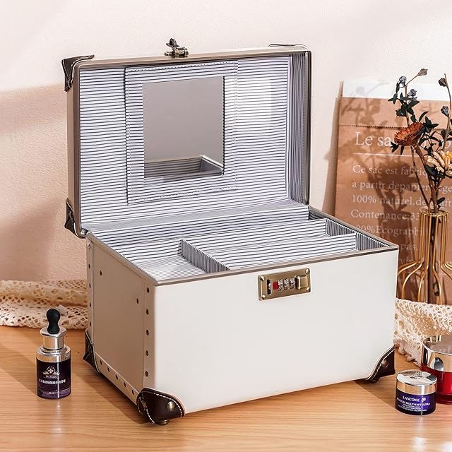 urecity ポータブルメイクアップトレインケース コスメティックオーガナイザーケース レザー収納ボックス コンビネーションロック付き