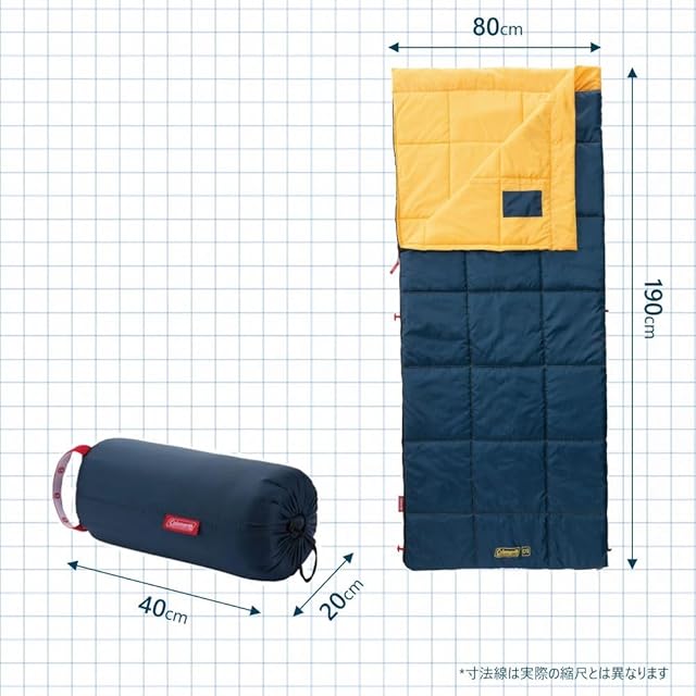 【ゆったり眠れる封筒型】窮屈感のない幅80㎝サイズなので、自宅の布団のような寝心地を提供します。ファスナーをすべて開けることで1枚の掛け布団のように使用することもできます。
