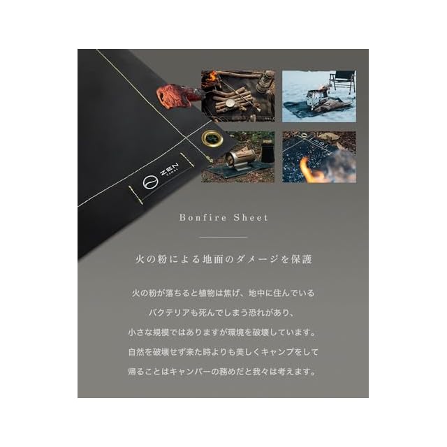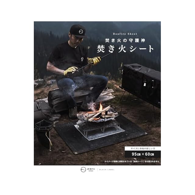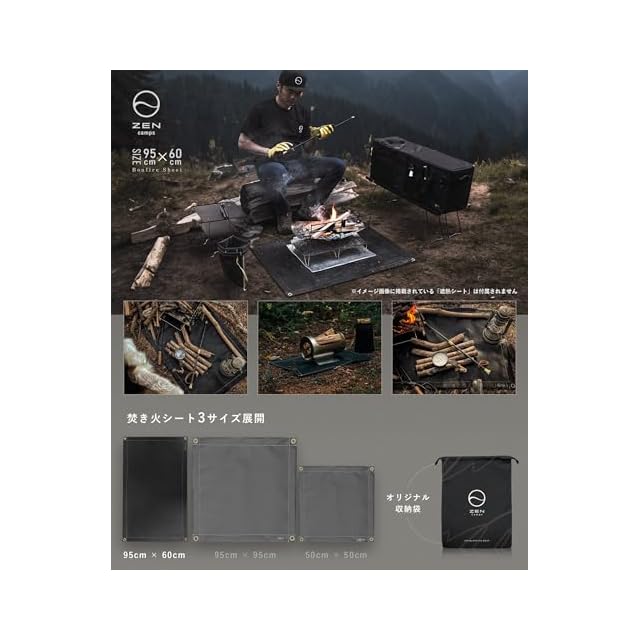 ZEN Camps 焚き火シート スパッタシート 焚き火台シート チクチクしない シリコン ブラック 黒 耐火 耐熱 防炎 防火 シート キャンプ 芝生保護【日本ブランド】 (95*60cm(オリジナル収納袋付))