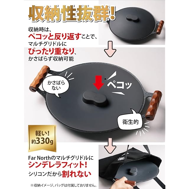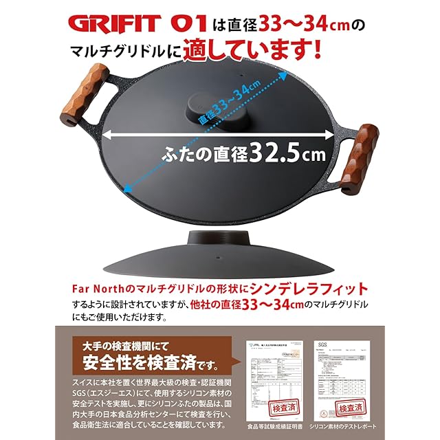 【ピタッとゼロ収納】 マルチグリドルのために設計・開発した シリコンふた 【特殊設計で特許出願中】 GRIFIT01 (グリフィット01) 33cm~34cmのマルチグリドルに対応 Far North