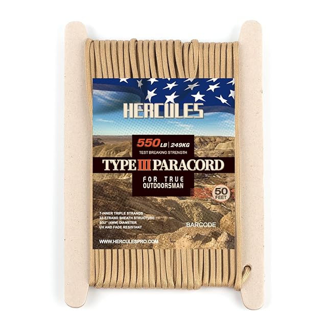 HERCULES パラコード ガイロープ キャンプロープ テントロープ アウトドア 用 耐荷重250kg 7芯 カーキ 15m