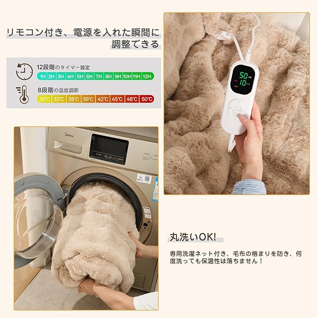 【洗濯機で丸洗いOK】コントローラーは取り外し可能です。洗濯する前に、必ずコントローラーコードを取り外した上で、電気毛布を洗濯機に入れ、「ソフトコース」で洗濯してください。乾かす際は、 電気毛布を最良の状態に保つために、自然乾燥または低温乾燥をお勧めします。完全に乾燥するまで、電源を接続しないでください。(※ドラム式洗濯機、乾燥機には対応していません)