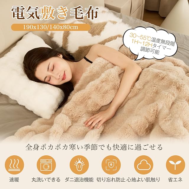 【省エネ・静音設計】:電気毛布 フランネルは低消費電力の発熱素材を使用し、長時間使用しても電気代が高くなりにくく、経済的で環境にも優しいです。 発熱時にはほとんど音がしない静音構造で、深い睡眠を妨げることがなく、毎晩安らかに眠れます。