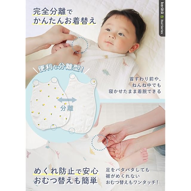 [ケラッタ] イブル スリーパー 夏用 ダブルガーゼ 赤ちゃん 新生児 ベビー 寝たまま着せられる 0歳 1歳 2歳 3歳 (レモン)