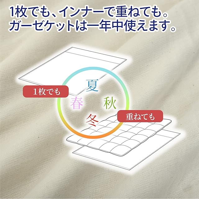 ふんわり柔らかな肌触りのタオルケットは、暑い季節は1枚で、秋冬は布団と合わせてインナーケットとしてもお使いいただけるので、オールシーズン活躍します。