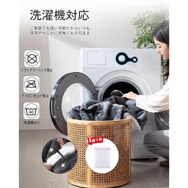 【ダニ対策・防臭配慮・本体丸洗いOK】やさしい肌ざわりを保ちながら、ダニの繁殖を抑えやすい構造と防臭配慮でいつも清潔。コントローラーを外せば本体をまるごと洗えるので、季節の変わり目も気持ちよくお使いいただけます。付属の専用洗濯ネットを使えば毛布を傷めずに清潔をキープできます。
