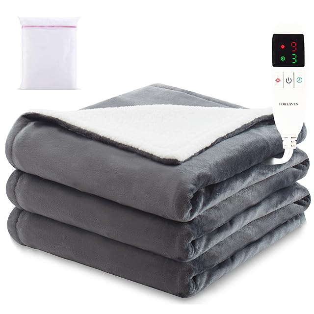 電気毛布 掛け敷兼用 洗える【大判 190×130cm】洗濯ネット付き 速暖 9段階温度調節 タイマー付き 節電 省エネ ダニ退治 防寒対策 丸洗いOK フランネル&シープボア 軽量 肩掛け 膝掛け シングル PSE認証済み (ダークグレー) Forlaven