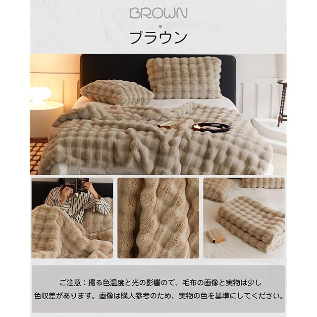 保温防寒 肌触リ快適 この毛布は2層の生地で縫製されており、外層はトスカーナ繊維で、毛むくじゃらで、きめが細かく柔らかく、肌ざわりが非常に快適で、通気性だけでなく保温性もある。内層は短い毛兎の毛で、柔らかいと同時に良好な吸湿性を持って、保温しながら適度に皮膚表面の乾いた快適さを維持します。