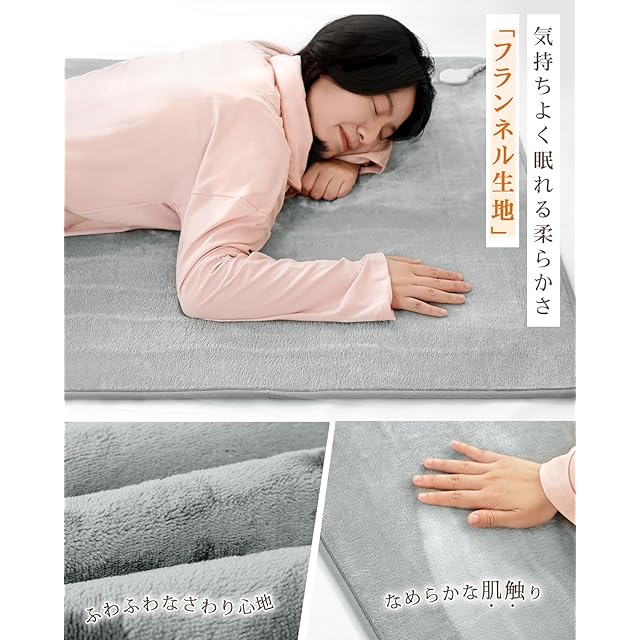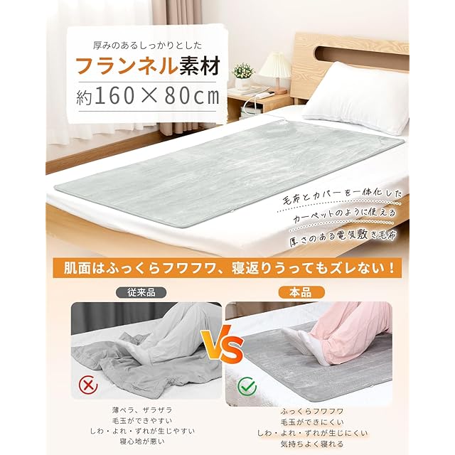 【ふわふわな触り心地・160×80cmサイズ&冬日実用】電気敷きは暖かくてふんわりとした柔らかな肌触りが魅力の「フランネル」素材を使用、ずっと触っていたくなるような気持ちよさで、心も体もリラックスさせます!従来品と比べて、保温性も厚さも向上し、ふんわりと柔らかく電気を入れなくても触っているだけでぬくもりを感じられます。この電気マットは、敷布団やマットレスに敷いてお使いいただけます。柔らかくてもこもこ毛布と癒され、やさしい温もりで寒い冬もあったか快適!ご両親、友達のお誕生日に最適なプレゼントです。