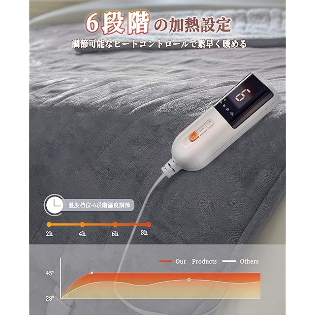 【インテリジェントな温度調整】:ボタン1つで6段階の温度設定が可能。 電気毛布の温度を自由に設定できます。この電気ブランケット、絶縁毛布カバー全体を通る高品質のヒーターワイヤーを装備しています。
