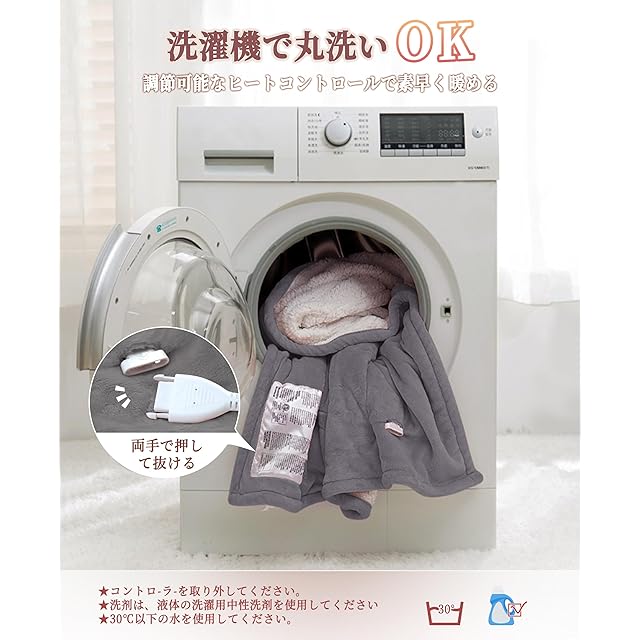 【お手入れ方法】:電気ひざ掛け洗濯機で洗えます。GOTCOZYのでんき毛布耐久性に優れ、お手入れも簡単です。洗濯後は、コードが絡まないように平らにしてください。