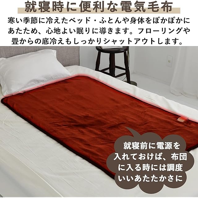 【寒い冬場の就寝時も快適に】寒い季節に冷えたベッド・ふとんや身体をぽかぽかにあたため、心地よい眠りに導いてくれる電気毛布。フローリングや畳からの底冷えもしっかりシャットアウトします。