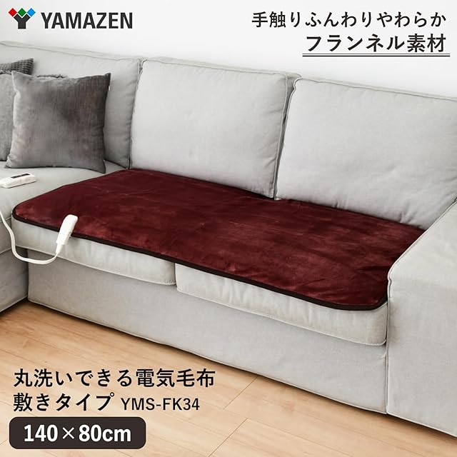 [山善] 電気毛布 敷き 電気敷毛布 140×80cm シングル 洗える やわらか フランネル ダニ対策機能 温度調節無段階 エンジ YMS-FK34(EN)
