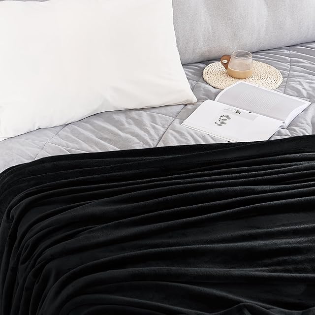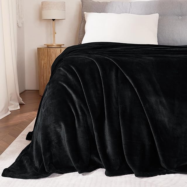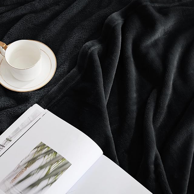 NICETOWN ブランケット 毛布 たおるけっと フランネル 膝掛け とろける布団 冬 暖かい 静電気防止 フリース おしゃれ オールウェザーブランケット ブラック 140*200cm