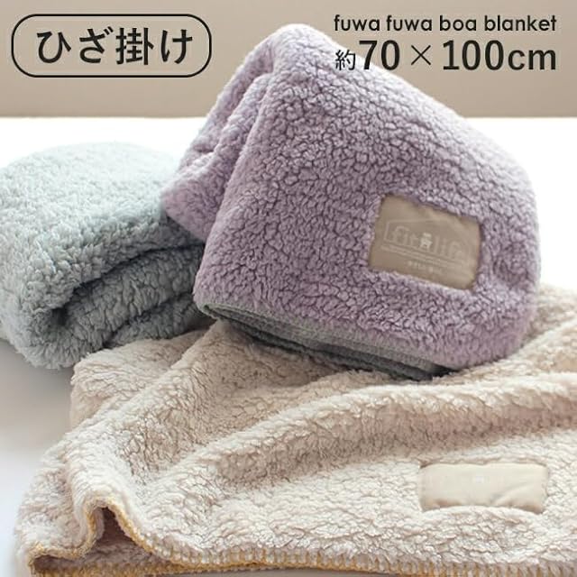 f/l やさしい暮らし 【北欧 シープ調ボア】ひざ掛け ブランケット 70×100cm おしゃれ 可愛い 軽い 暖かい ふわふわ もこもこ (ひざ掛け, ブルーグレー)