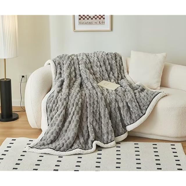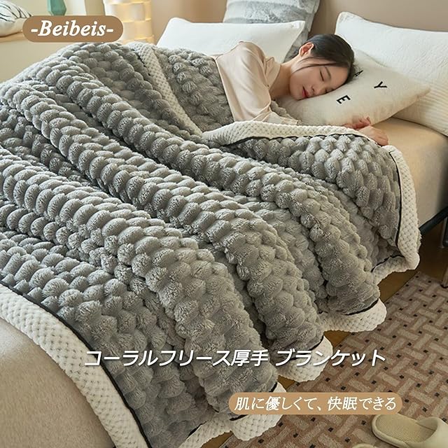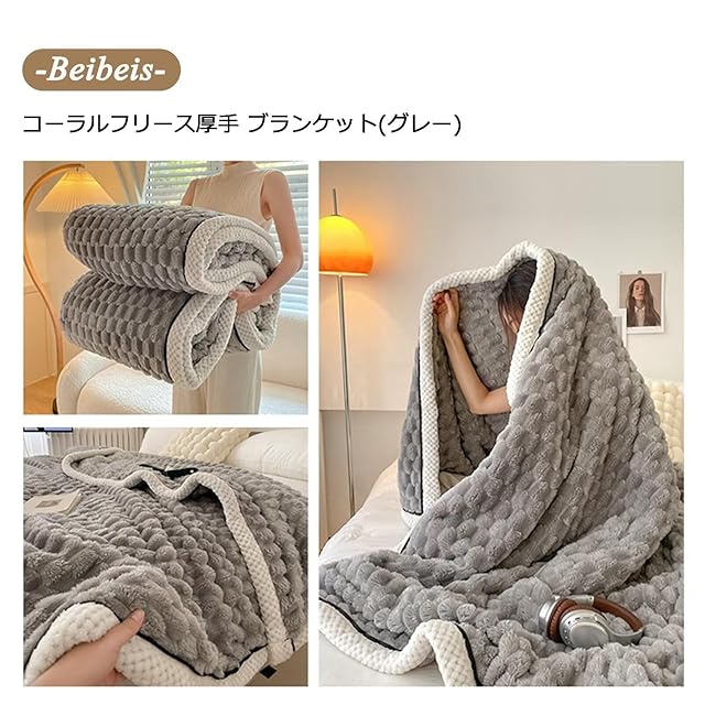 コーラルフリース両面ブランケットBlanket毛布シングル 柔らかいふわふわ軽量洗える大判ブランケット,マイクロファイバー厚手 吸湿発熱 静電気防止ひざ掛け ブランケット秋冬用防寒オールシーズン掛け毛布。(グレー,長さ200cm×幅さ120cm)