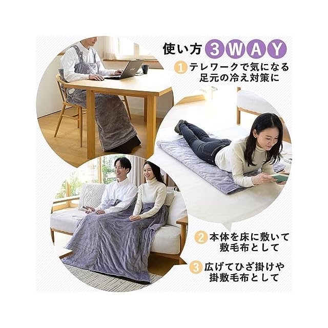 【省エネ】ヒーターやコタツと違い、ひとりだけあたためるアイテムなので省エネで経済的です。電気代は1日8時間使用した場合約6.4円で1ヶ月だと約192円とお財布にやさしく、気軽にお使いいただけます。