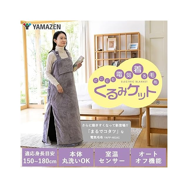 [山善] 電気毛布 着る毛布 着るこたつ メンズ レディース 丸洗い可能 くるみケット ダニ対策機能 室温センサー タイマー付 オートオフ機能 ひざ掛け 掛毛布 敷毛布 YAPP-401AC(LV) ラベンダー