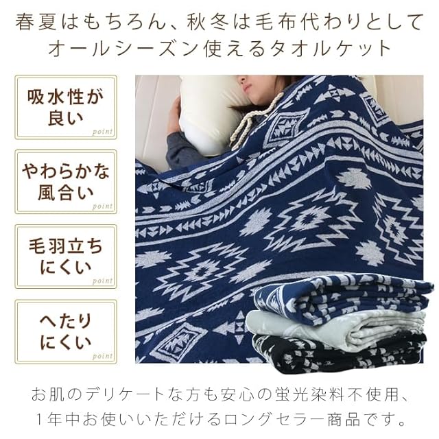 天然素材でお肌のデリケートな方も安心、冬場は毛布代わりにとオールシーズン使える良質なタオルケットです。ソファーカバーやキャンプ用にご使用される方も多いです。