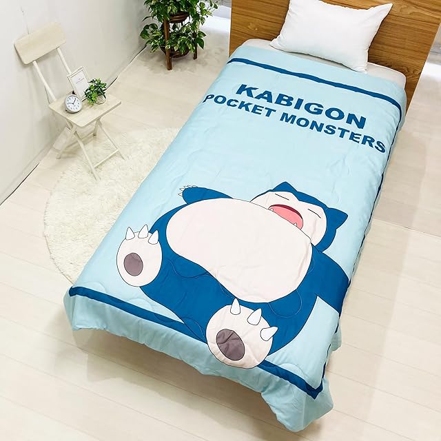 MORIPiLO ポケモン 夏用掛け布団 カビゴン (ふわサラ快適 肌掛け布団) 140x190cm 子供 大人兼用 洗える 可愛い グッズ グリーン pokemon ポケットモンスター キャラクター まくらのモリシタ