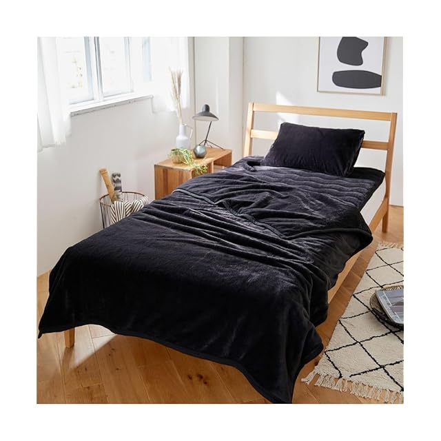 [ニッセン] まるで猫!のようなモフモフ2枚合わせ中わた入り毛布(吸湿発熱わた入り)(猫Feel) 黒猫 シングル