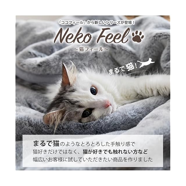 猫が好き!そして猫に触れているととても暖かい!その暖かさ、心地よさを追求した毛布が新登場!今季のCocoFeel番外編として登場の猫Feel!色の出し方、毛並み、毛足の長さ・・・何度も試作を重ねた今季お勧めの猫Feelを是非ご使用下さい!