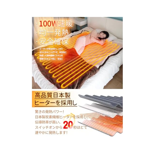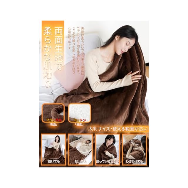 【場所を問わず冬に大活躍&高級感プレゼントで、特別な冬を贈ろう】電気毛布は肩から足までかけて、全身効率よく暖める約180×131cm大きめサイズ、掛け毛布だけではなく、敷き毛布、気座布団など多数使用WAYがあります。電気毛布は贈り物として、暖かみを伝えるだけでなく、深い友情を象徴するものです。寒い日々に受け取った人に継続的な温もりをもたらし、まるで常にその人の傍にお伴してくれる暖かい守りのようです。1年間の安心と充実したアフターサービス体制により、より安心してご利用いただけます。