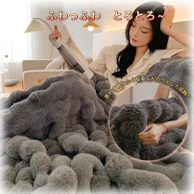 【大人気のふわとろ毛布】TV&SNSで話題になった大人気のふわとろ毛布!ラビットファー調二枚合わせ毛布、両面ふわふわ素材、高級感up、保温性が良い!おしゃれなお部屋を演出し、寒い冬でも暖かくお過ごしいただけるブランケットです。
