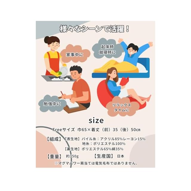 【洗えて清潔】ご自宅の洗濯機で丸洗い可能。お子様や介護のシーンにもオススメです。 【電気毛布いらず】電気毛布は電磁波があり、のどが渇く、乾燥することがありますが、マグマパワーはエコでじんわりと発熱してくれます。