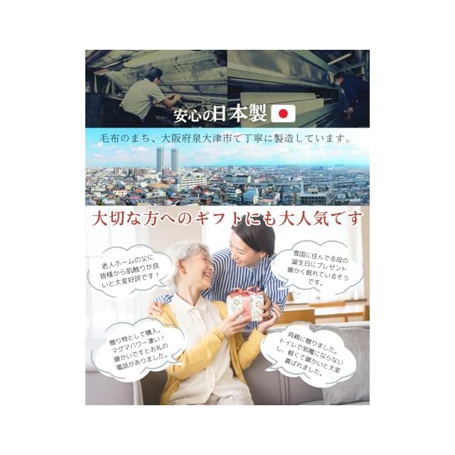 【あたたかい肌当たり】触れた瞬間のヒヤッと感が少なくあたたかさを感じる触り心地。 【安心の日本製】しっかりとした使い心地。何シーズンかご使用できます。