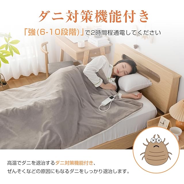 【本体丸洗いOK】本製品は、コントローラーを外すことで洗濯機で丸洗いが可能です。ダニ退治機能も搭載されておりますので、ダニ退治後に丸洗いすることで清潔にご使用になれます。※洗濯の際は、洗濯ネットをご使用ください。※コントローラーを外せば、縦型洗濯機で洗えます。縦型洗濯機を使用してない方は、軽く手洗いしてください。