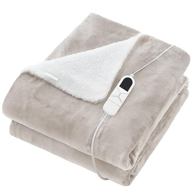 Housecover 電気毛布 掛け 敷き 【両面使用可能:フランネル+シープボア】 3分速暖 電気ひざ掛け 洗える 10段階温度調節可 10段階タイマー 頭寒足熱 ダニ退治 省エネ 丸洗い可 室温センサー 暖房器具 PSE認証済み 140×80cm グレージュ